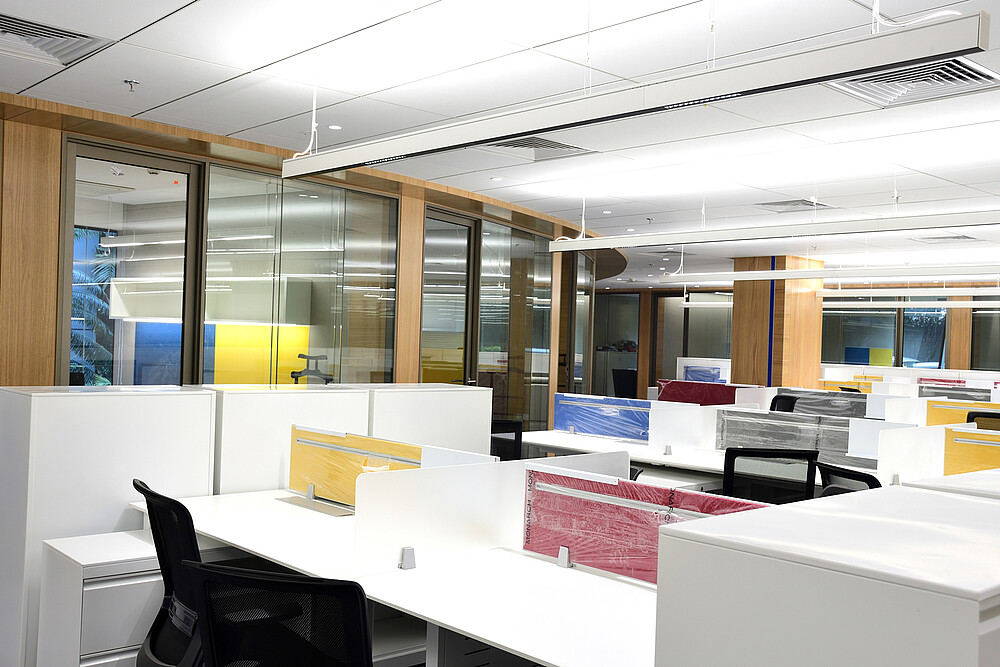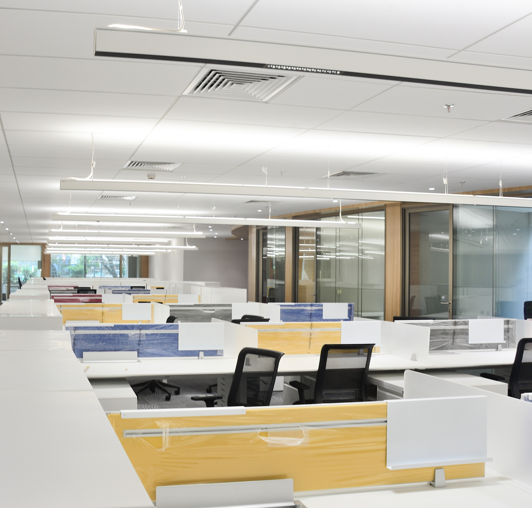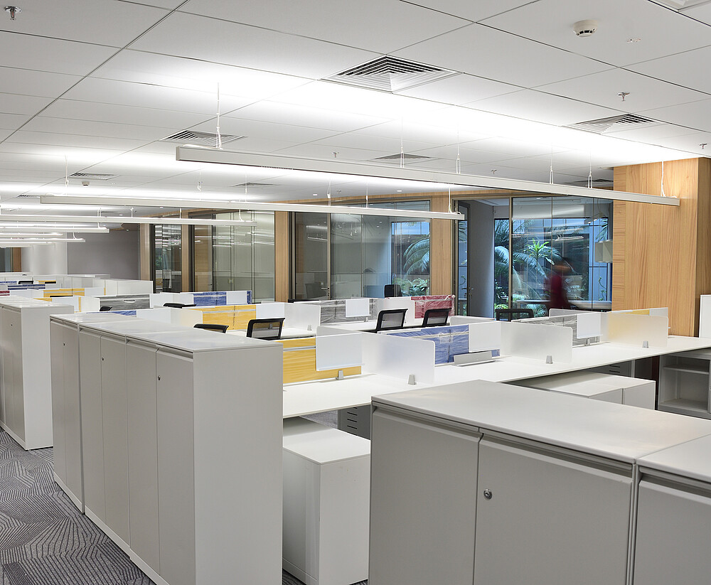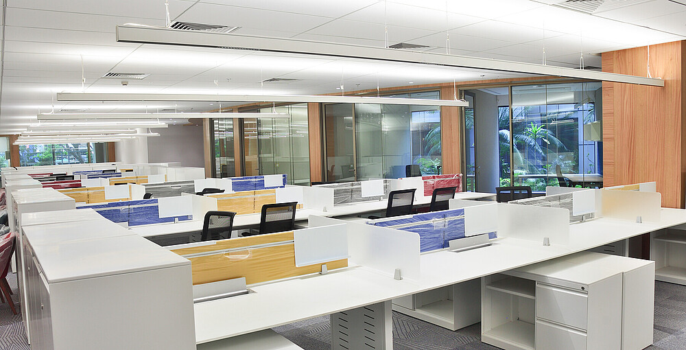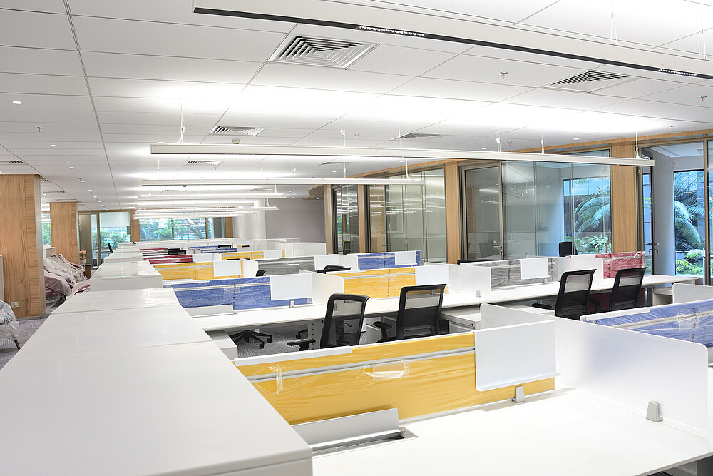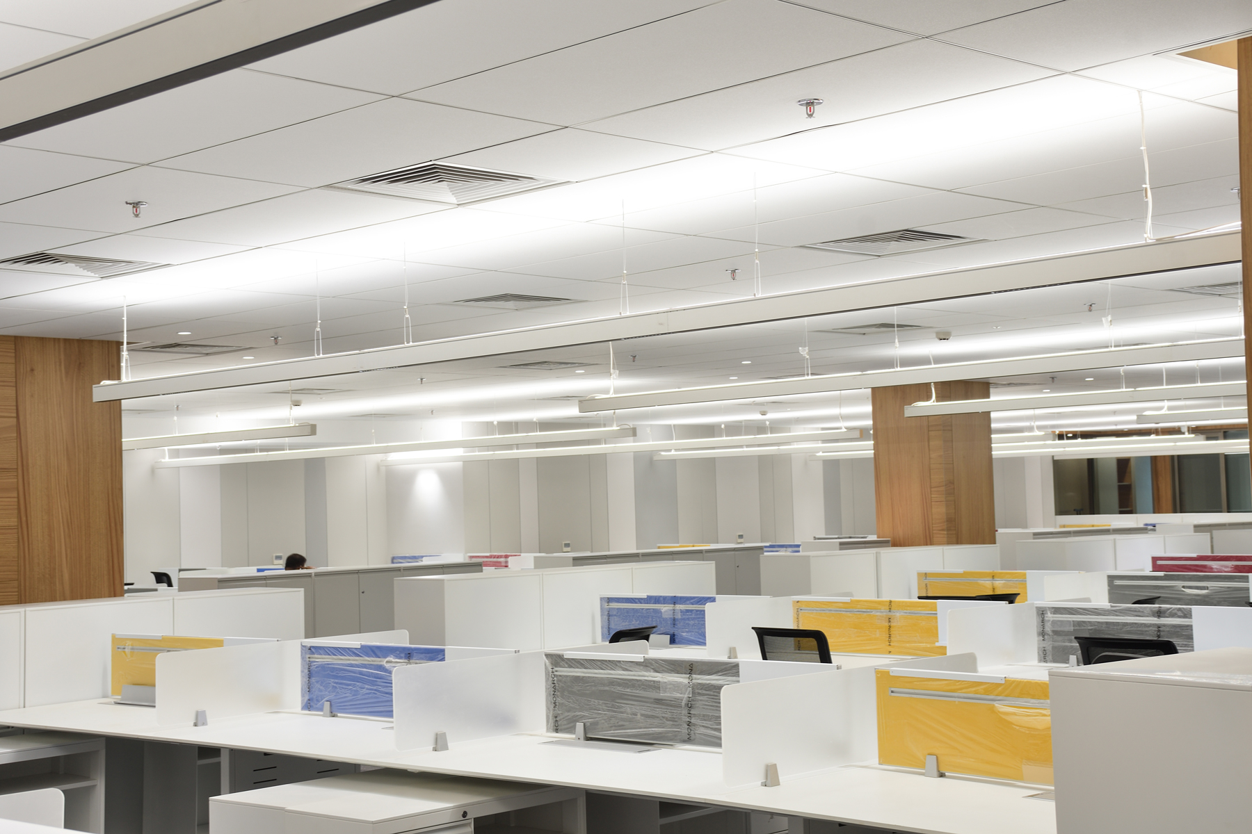 Das „Office in Delhi“ ist als hell beleuchteter Arbeitsbereich konzipiert, der eine gesunde Umgebung ermöglicht und die Effektivität der Mitarbeiter erhöht. Die Arbeitsbereiche einschließlich der Privatkabinen sind mit Leuchten von LED Linear™ ausgestattet, z. B. MARS NANO, LYRA 36 NANO und XOOLINE™. Ein großvolumiges Design ermöglicht ein sicheres, geschütztes und gesundes Umfeld für die Menschen.
