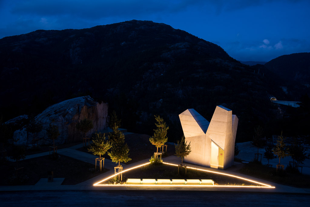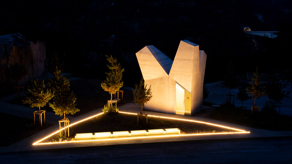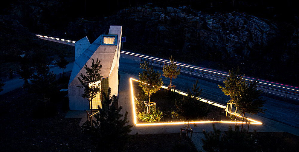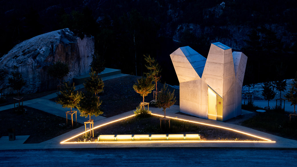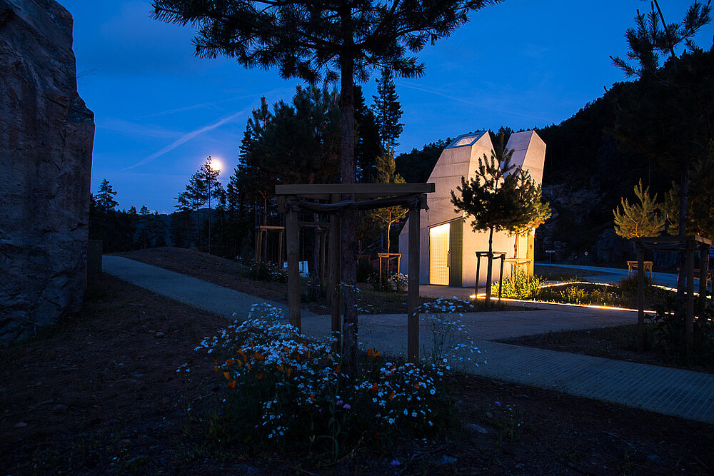 Das Ziel von Kap Architects war es, eine Leitlinie vom Parkplatz zum Servicegebäude und zurück zu schaffen. Die Lichtlinien, realisiert mit der robusten Bodeneinbauleuchte OCEANOS, schaffen zusammen mit den beleuchteten Türen einen navigierbaren Effekt.