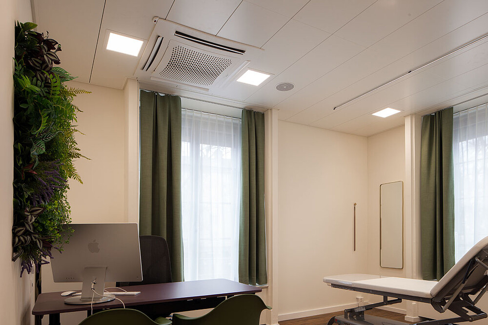 Die ULTIMA-S wurde im Wartebereich an der Decke in asymmetrischer Anordnung installiert und taucht die Räumlichkeiten in ein behagliches Licht, das die Pflanzen eindrucksvoll in Szene setzt. Das gezielte Hervorheben von Pflanzen und Interieur durch Licht sorgt für eine wohltuend beruhigende Atmosphäre.