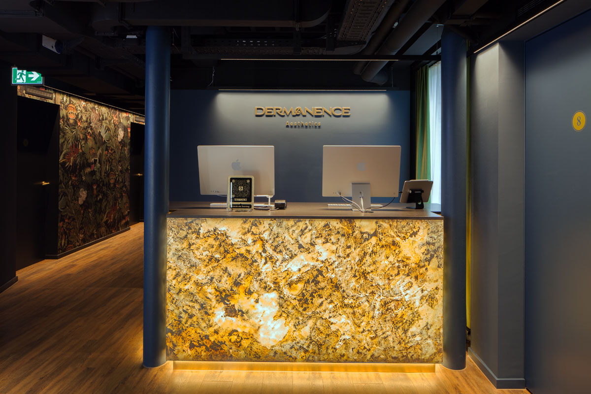 Für das zweite Kompetenzcentrum der Dermatologischen Klinik Dermanence wurde ein außergewöhnliches Interior und Lichtkonzept realisiert.