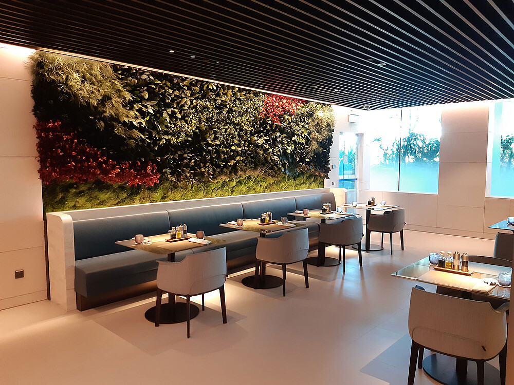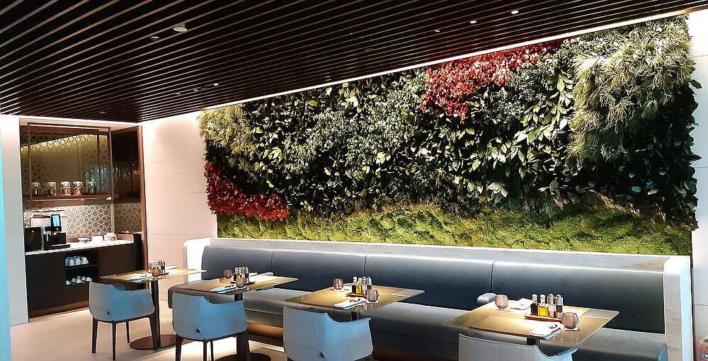 ADONIS ARCHITECTURAL wurde in diesem Projekt eingesetzt, um die Mooswand innerhalb der Lounge zu akzentuieren und als Highlight darzustellen. Die Leuchte sorgt für eine hervorragende Beleuchtung, die die Mooswand perfekt in Szene setzt und das einzigartige Flair der Lounge unterstreicht.
