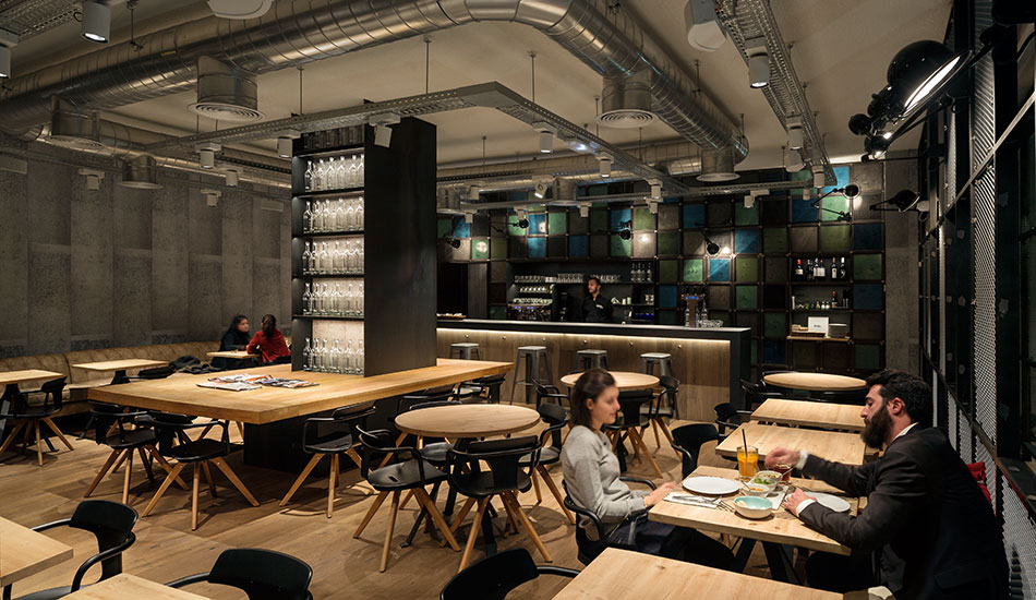 Auch beim Beleuchtungskonzept wurde auf den Schutz der Umwelt Wert gelegt und daher eine energiesparende und schadstofffreie LED-Beleuchtungslösung gewählt. An der Theke und in der Vitrine kam dabei die Lichtlinie HYDRALUX™ aus dem Hause LED Linear™ zum Einsatz. Diese filigrane und frei konfektionierbare Leuchte konnte dabei auf der Baustelle genau an die Applikationen angepasst werden. Ihr Licht ist homogen und gleichmäßig, so werden Theke und Vitrine ansprechend akzentuiert.