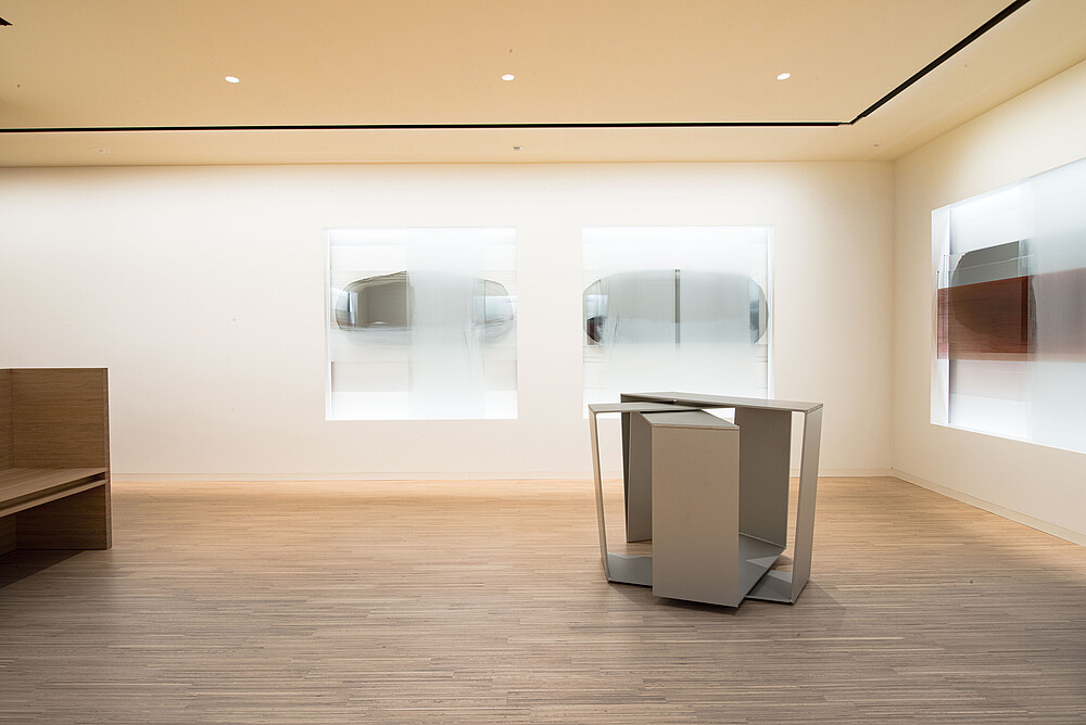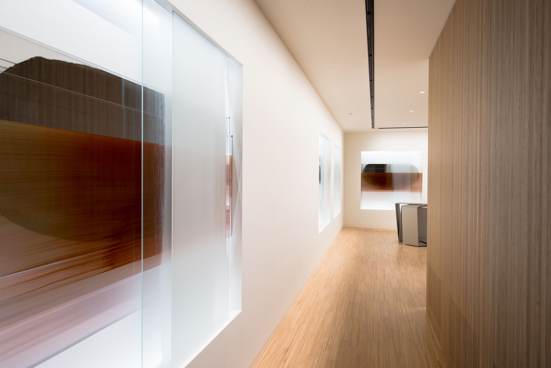 Das Lichtkonzept wurde realisiert mit der Leuchte MARS EVE Wall Washer. Die Leuchten wurden in die Decke integriert, um die Wände vollflächig homogen auszuleuchten. Zur Hinterleuchtung der Glaskunstwerke wurde die Leuchte XOOLINE™ gewählt, die eine optimale Lichtstimmung im Einklang mit den Kunstwerken erzeugt.