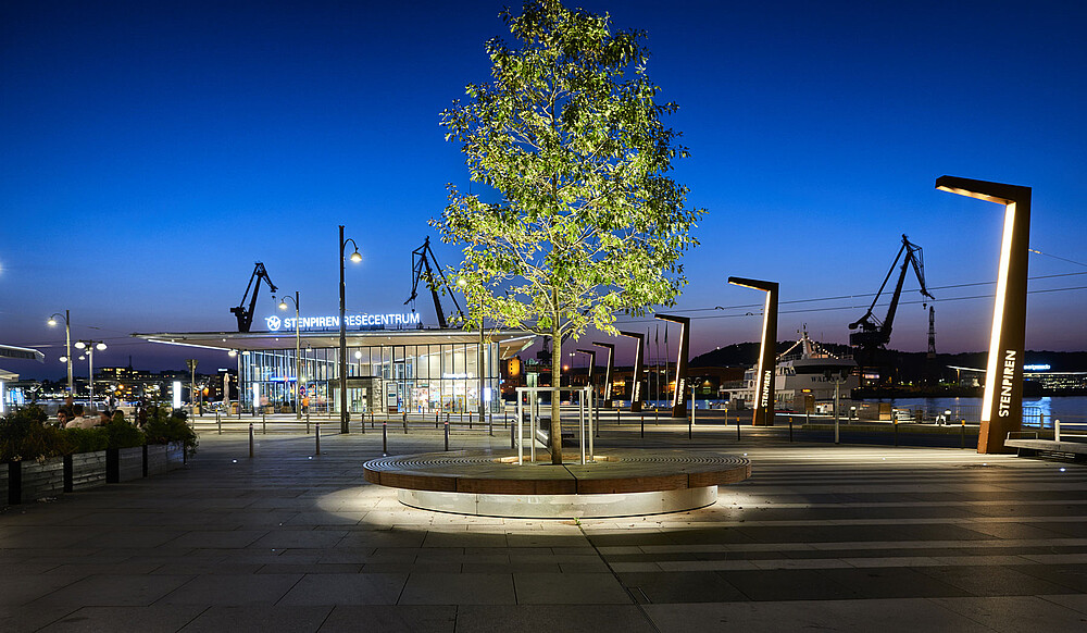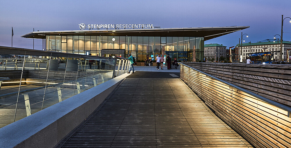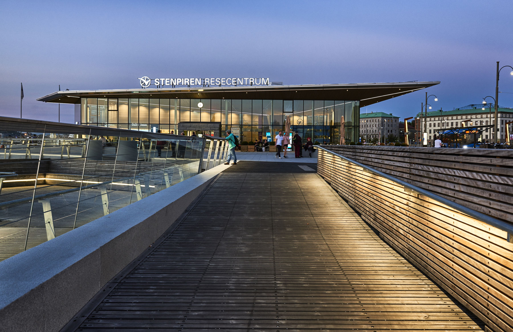 Das „Stenpiren Reisezentrum“ als Teil des Skeppsbron Projektes entlang des Göta Flusses, soll einen neuen Treffpunkt für die Menschen in Göteborg darstellen. VarioLED™ HYDRA LD5 2700 K IP67 und VENUS SV 3000 K IP67 LED-Leuchten sind integriert in den Handläufen, in den Bänken und in den speziell angefertigten Stahlpfosten verbaut. Sie lassen die Umgebung rund um das Reisezentrum in hellem Licht erstrahlen und sorgen für eine angenehme Atmosphäre für alle, die auf der Durchreise sind oder am Fluss verweilen möchten.