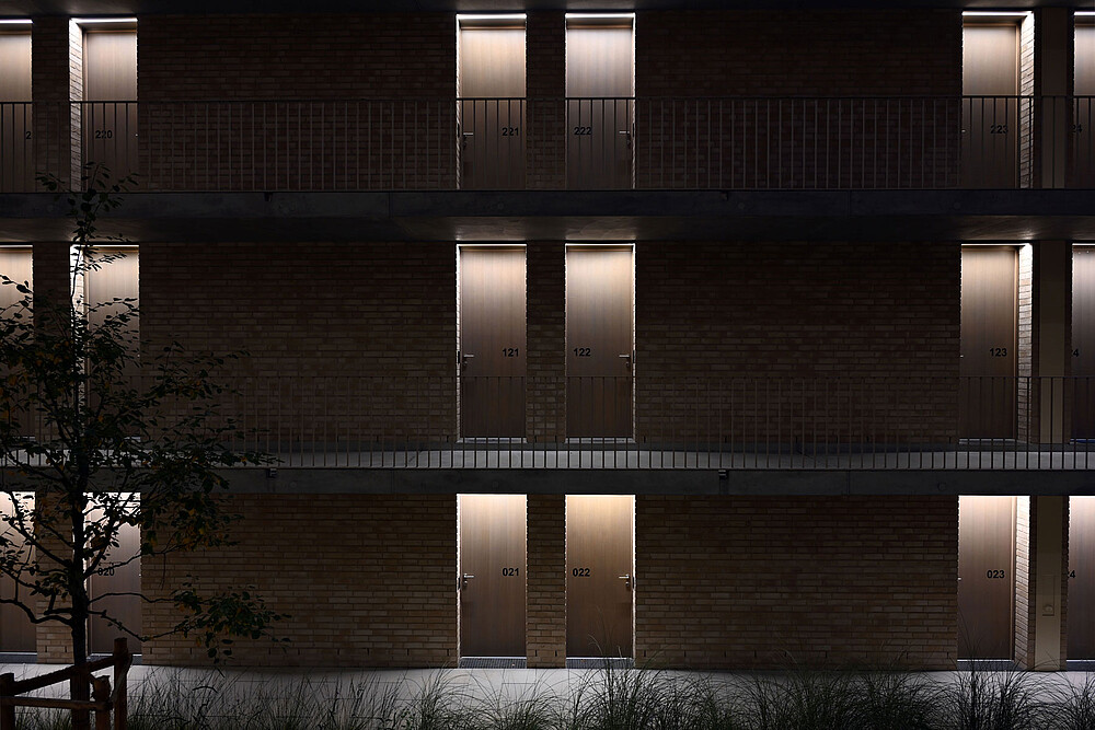 Die Lichtleisten, die in einer Nut über den Türen platziert wurden, treten tagsüber vollständig in den Hintergrund. Grund dafür war nicht nur der ästhetische Aspekt, sondern auch, um Vandalismus vorzubeugen und sicherzustellen, dass das Design zeitlos bleibt. Der Fokus auf das gewählte Lichtdesign steht klar im Vordergrund, wodurch die XOOLINE™ IP67 nicht nur als funktionale Lichtquelle dient, sondern auch als gestalterisches Element.
