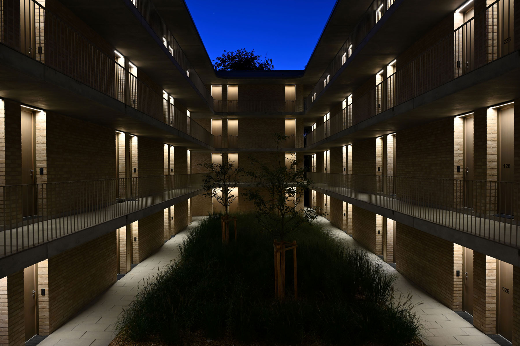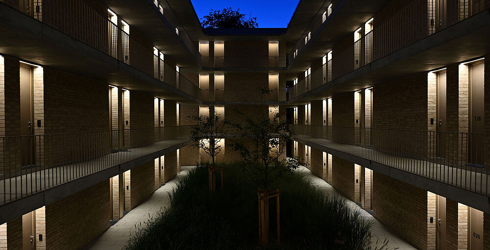 Bei diesem Projekt wurde der Innenhof eines Studentenwohnheimes in Ingolstadt gekonnt mit der XOOLINE™ IP67 als Lichtquelle illuminiert. Statt auf grelles, direktes Licht zu setzen, wurden geschickt angeordnete indirekte Lichtquellen über den Apartmenttüren installiert. Das Ergebnis zeigt einen Innenhof, der in einem besonderen Glanz erstrahlt. Das warme, weiche Licht der XOOLINE™ IP67 strahlt sanft nach unten, schafft eine gemütliche Atmosphäre und wirft diffuse, weiche Schatten auf den Boden. Diese durchdachte Beleuchtung verleiht dem Innenhof eine einladende Stimmung und schafft einen angenehmen Raum für die Bewohner.