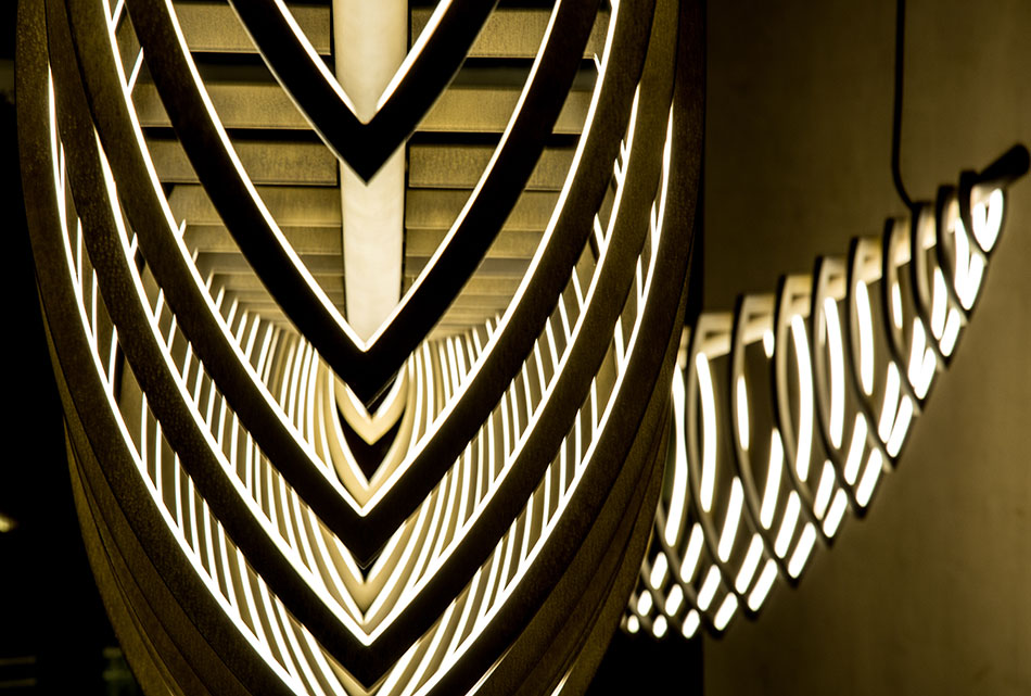 Die Beleuchtung im Inneren der einzigartigen Skulptur ist die VarioLED™ Flex VENUS TV in W827 – eine voll flexible geschützte Lichtlinie, die auf der Innenseite des Squelette angebracht ist und eine interne skulpturale Glut kreiert. Das Endergebnis ist eine beeindruckende Lichtskulptur, die mit ihrer Umwelt in perfekter Harmonie ist.