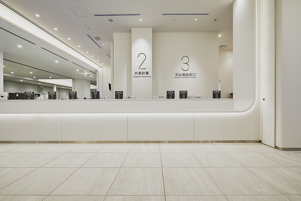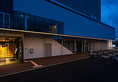 Um den Eingangsbereich des Gebäudes zu beleuchten, wurde unterhalb des Empfangstresens die VENUS True Color in der 3D-Variante installiert. Die Leuchte ist eine dreidimensionale biegbare Lichtlinie, die sich optimal in die Form des Tresens einfügt und somit ein optimales Lichtergebnis schafft.