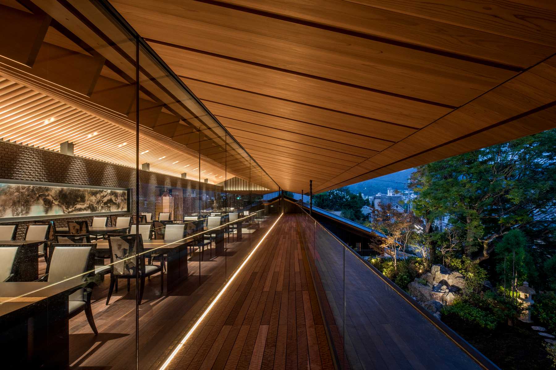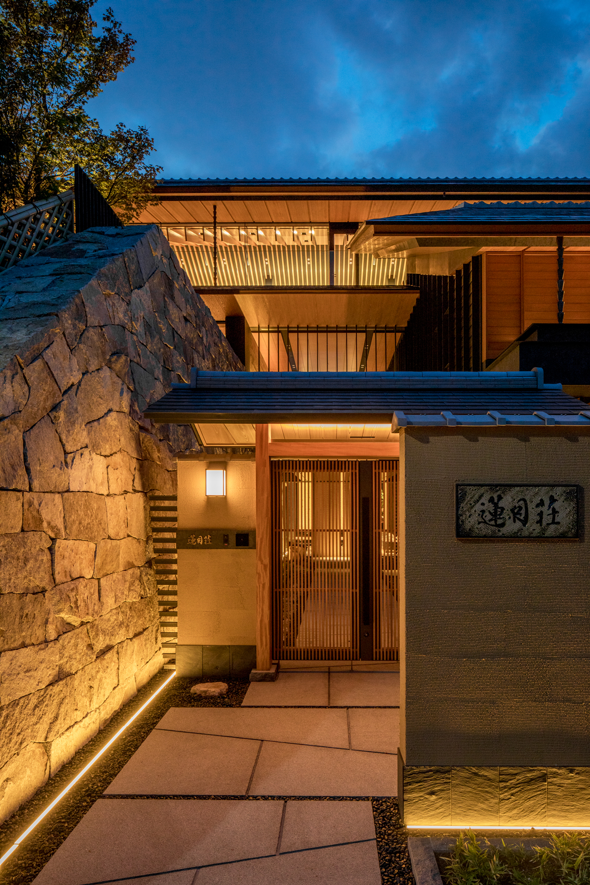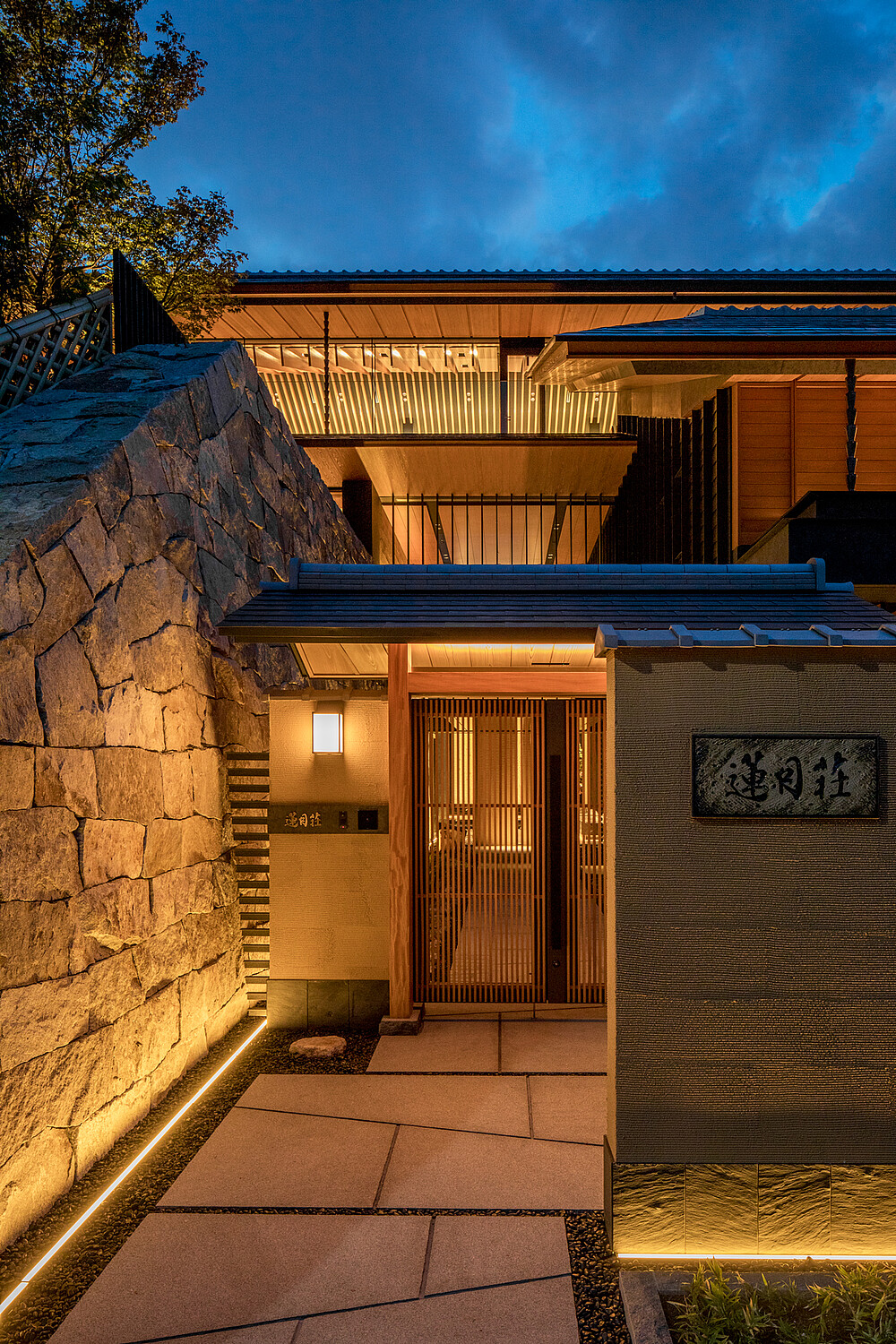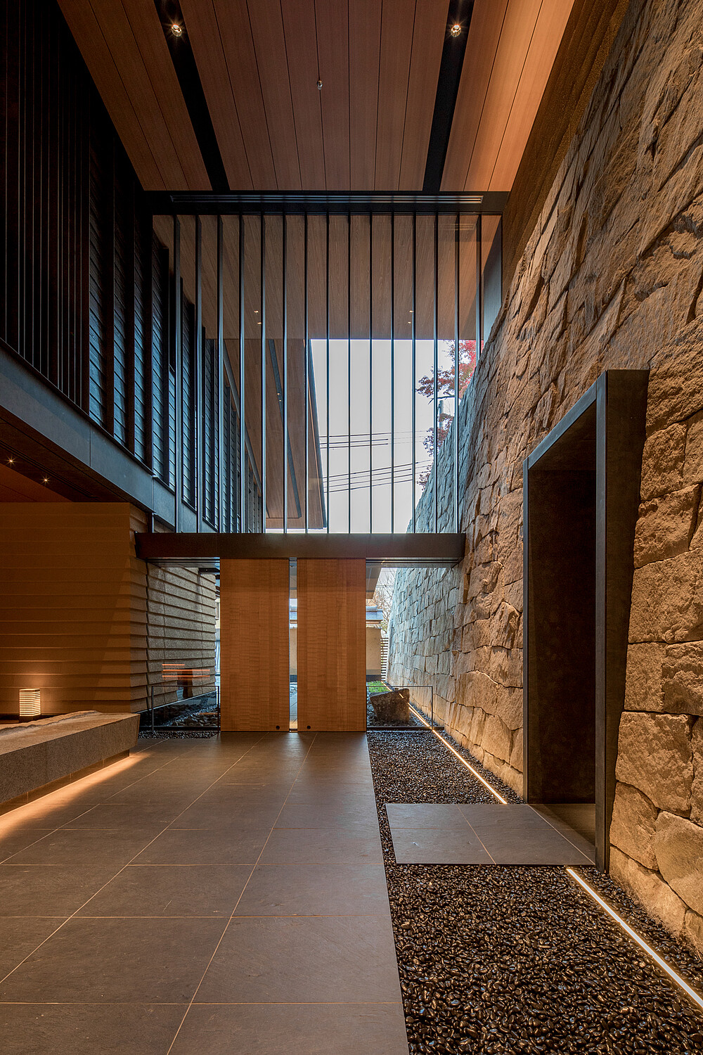 Trusco Nakayama Kyoto Kaguraoka Rengetusou wurde für die Mitarbeiter der Firmen der Trusco Nakayama Corporation gebaut. Charakteristisch für dieses außergewöhnliche Gebäude ist die Konstruktion des Hauses, die größtenteils aus Holz und Steinwänden besteht. Die XOOLUM™ LED-Leuchte ist sowohl im Außenbereich, als auch im Poolbereich installiert. Sie betont die Struktur der mächtigen Steinwände und stellt zusätzlich die Diversität der unterschiedlichen verbauten Materialien in den Vordergrund. Die schmale flexible Lichtlinie AMOR ist auf dem Holzdeck im zweiten Stockwerk eingelassen, wo sie für eine elegante und homogene Akzentuierung der langen und eindrucksvollen Glasfront sorgt.