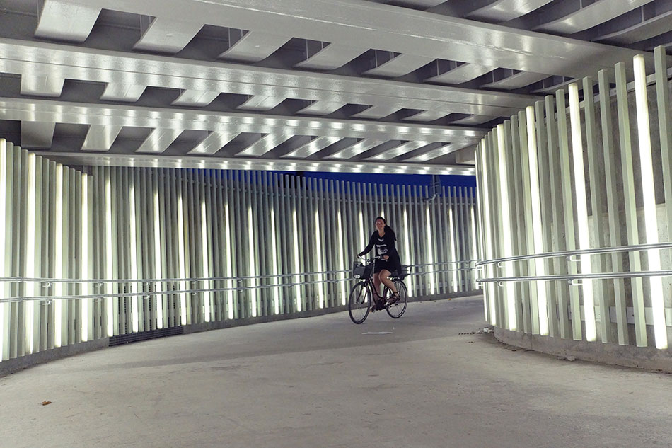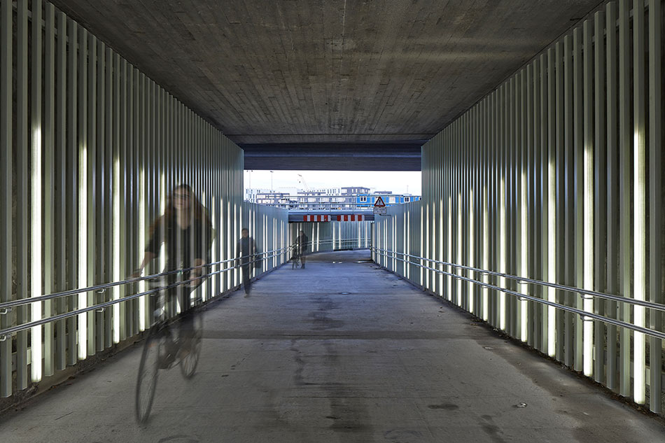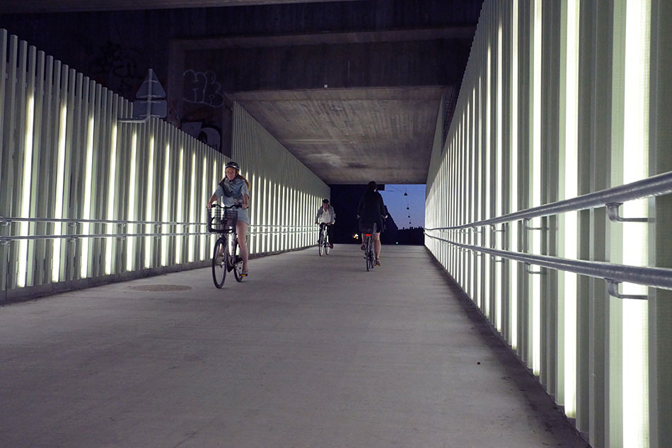 Mit den Produkten von LED Linear wurde an dieser Unterführung in Kopenhagen eine langlebige und effiziente Tunnelbeleuchtung realisiert. Gute Beleuchtung ist in dieser Applikation essentiell wichtig für die Sicherheit der Nutzer, daher wurde auf ausreichende Leuchtdichten und homogenes Licht geachtet. Die vertikalen Lichtlinien sind jedoch auch aus dekorativer Sicht attraktiv und setzen ansprechende Akzente. Der Weg wird so für Fußgänger und Radfahrer einladend und sicher gestaltet. Auch bei der Steuerung wurde auf die Bedürfnisse der Nutzer eingegangen, denn die Leuchten sind in Gruppen aufgeteilt und können daher gruppenweise an- und ausgeschaltet oder gedimmt werden. Somit sind Anpassungen an das Tageslicht möglich.