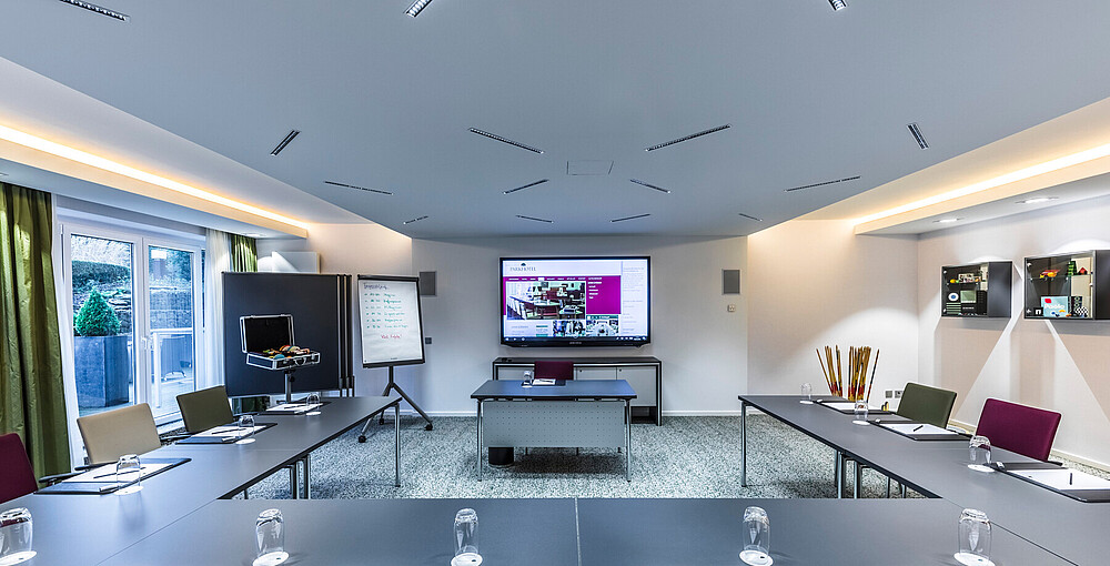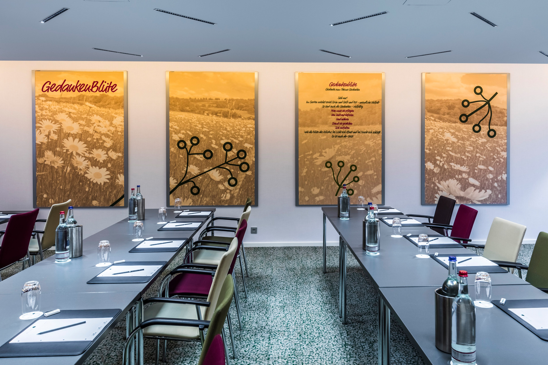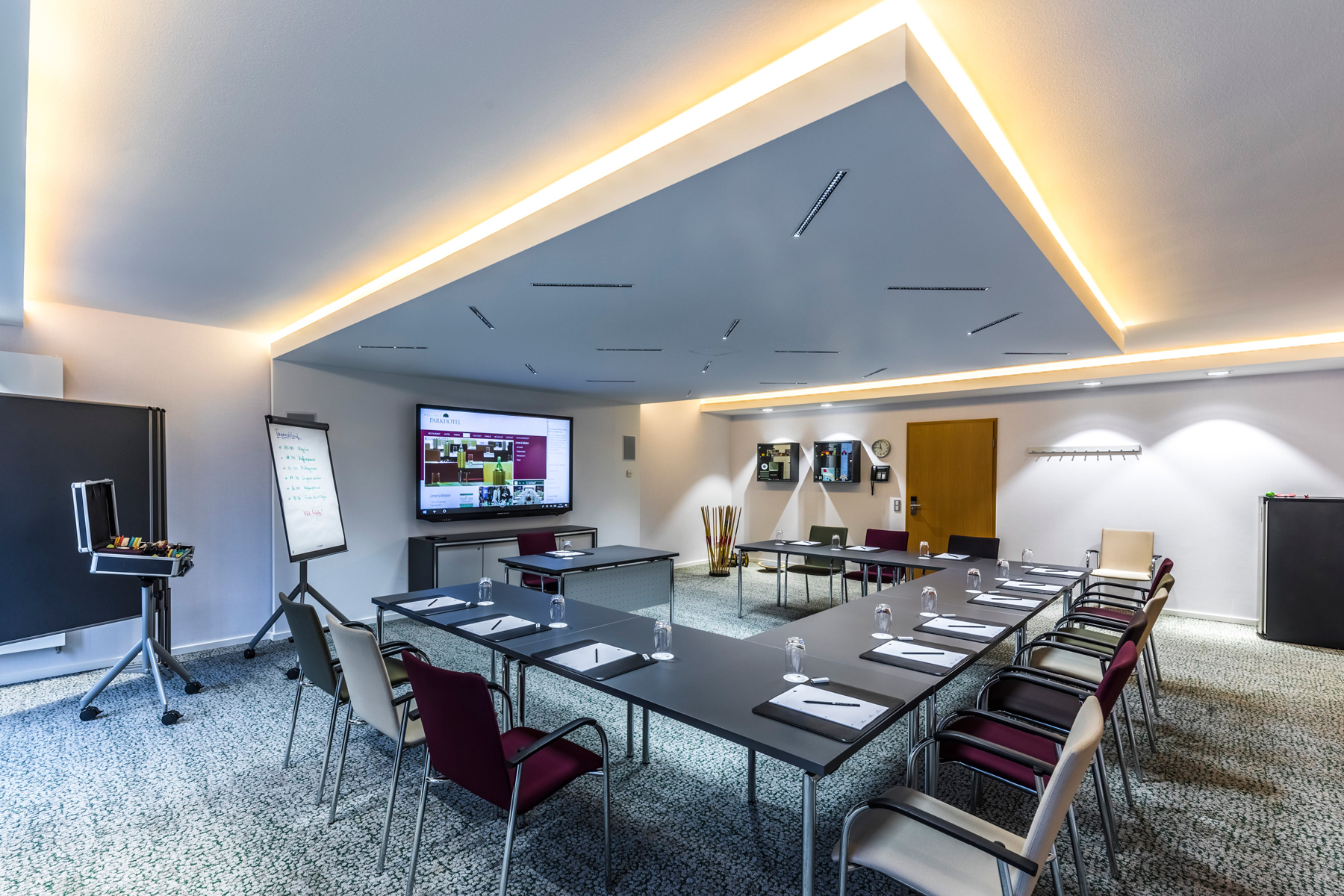 Für den Austausch von Ideen, das Schaffen neuer Konzepte und die Wandlung von Herausforderungen in Gelegenheiten, bieten die Tagungsräume vom Wellings Parkhotel ein modernes Umfeld. Das Beleuchtungskonzept mit der Einbaulösung der MARS ARCHITECTURAL mit 65° Optik liefert blendfreies Licht und verschwindet nahezu unsichtbar in der abgehängten Decke. Vouten mit der Leuchte XOOCOVE sorgen für weiteres indirektes Licht.
