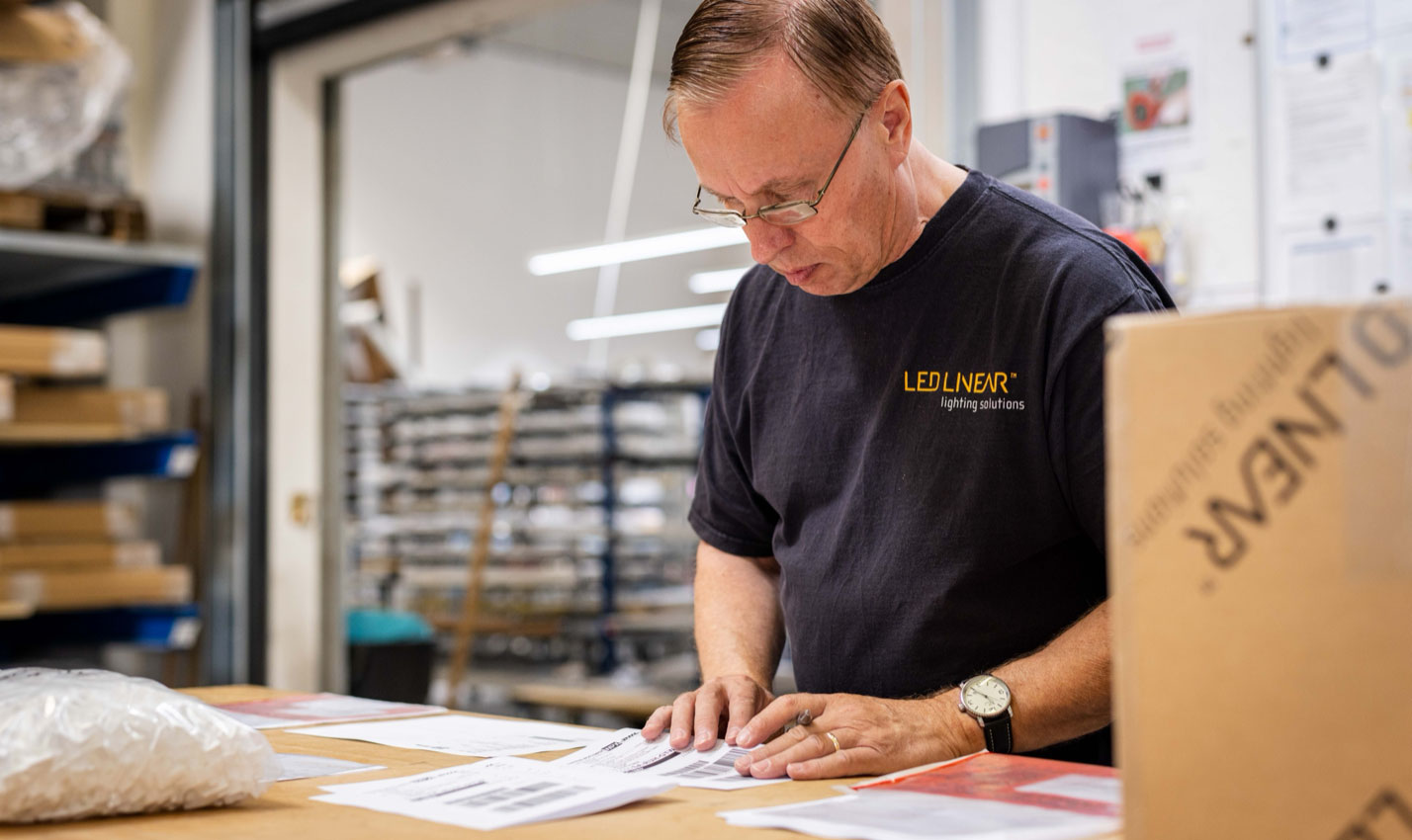 Effektive und effiziente Verpackung und Versand sind für jedes Unternehmen von großer Bedeutung. Für LED Linear stellt er einen der Erfolgsfaktoren bei ab-Werk-Lieferungen dar. Denn hier wird die Ware für die einzelnen Kunden kommissioniert, noch einmal letztmalig auf Funktionalität geprüft und professionell verpackt. Ein nachhaltiges Verpackungskonzept sorgt dafür, dass weniger Umverpackung verbraucht wird und die Leuchten unversehrt und gut beschriftet beim Kunden oder direkt auf der Baustelle ankommen.