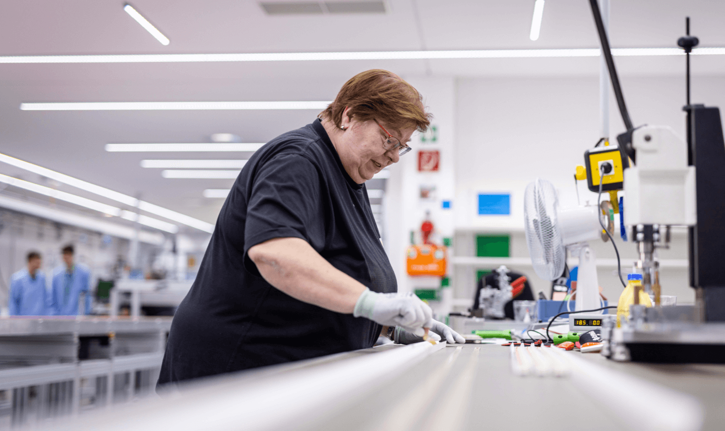 In der Abteilung Montage Indoor-Leuchten ist Fingerfertigkeit und Fingerspitzengefühl gefragt. Hier wird gelötet, die Leuchten werden liebevoll mit allen Komponenten nach den einzelnen Fertigungsaufträgen von Hand zusammengebaut. Das erfahrene Montageteam arbeitet mit einem Höchstmaß an Präzision und Professionalität für alle unsere Standardleuchten sowie Sonderanfertigungen.